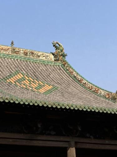 Mais avant d’entrer dans la ville, un ancien temple bouddhiste, le temple Shuanglin (à ne pas confondre avec le monastère Shaolin dont j’ai parlé ailleurs). Ce temple est célèbre pour ses sculptures sur bois (Bouddha, Bodhisattva, guerriers gardiens, Arhat, généraux « sanctifiés » et autres saints bouddhiques).